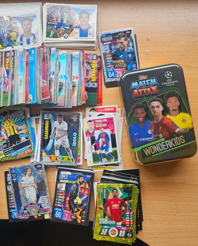 Detalles del productoSe venden cromos de fútbol de diferentes colecciones: Adrenalyn XL y Topps Champions League, liga este,.... Están en buen estado.incluye latas.