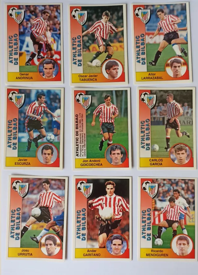 Detalles del productoColección de cromos de la Liga 94-95 del Athletic de Bilbao. Incluye jugadores como Genar Andrinua, Oscar Javier Tabuenca, Aitor Larrazabal, Javier Escurza, Jon Andoni Goicoechea, Carlos Garcia, Josu Urrutia, Ander Garitano y Ricardo Mendiguren.