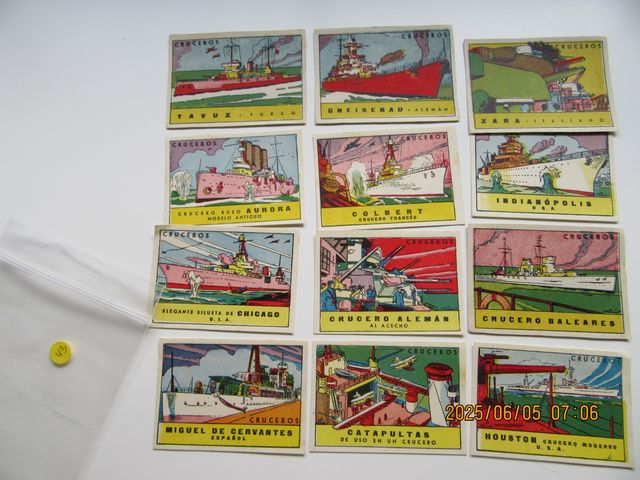 Detalles del productoColección de 12 cromos de cruceros de la Segunda Guerra Mundial. En perfecto estado, nunca se han pegado. Ed. Cisne