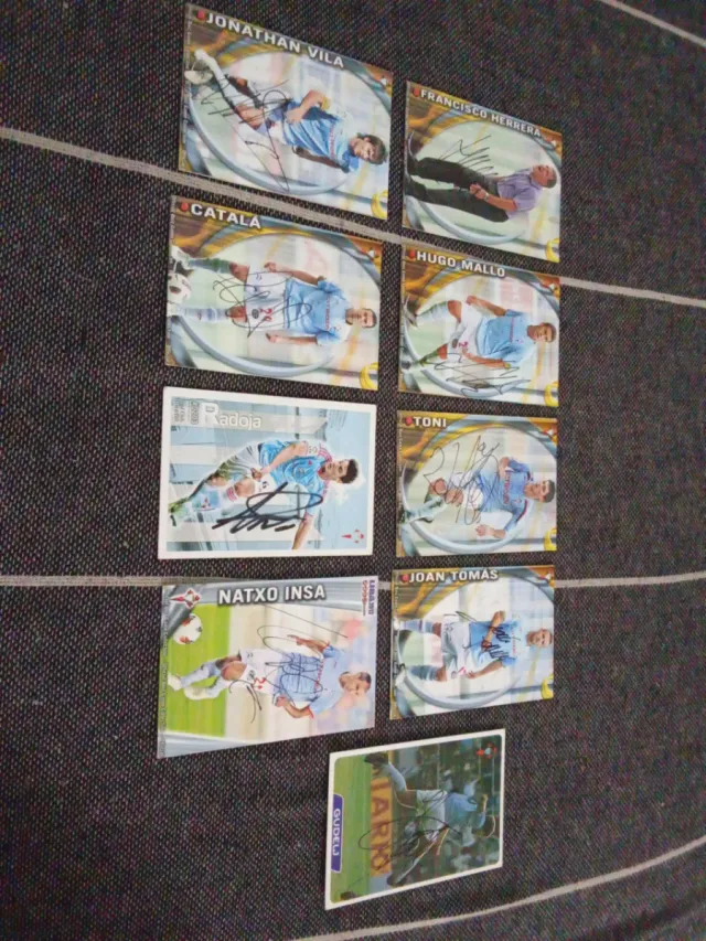 Detalles del producto9 cromos firmados por los jugadores del Celta de Vigo. Firmas auténticas.
