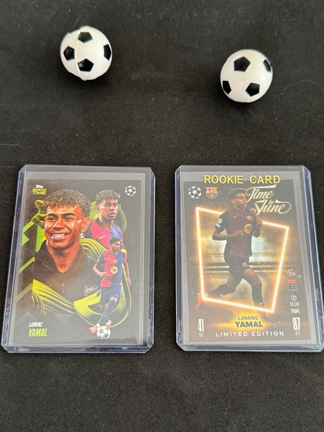 Detalles del productoDos cromos de fútbol de Lamine Yamal.