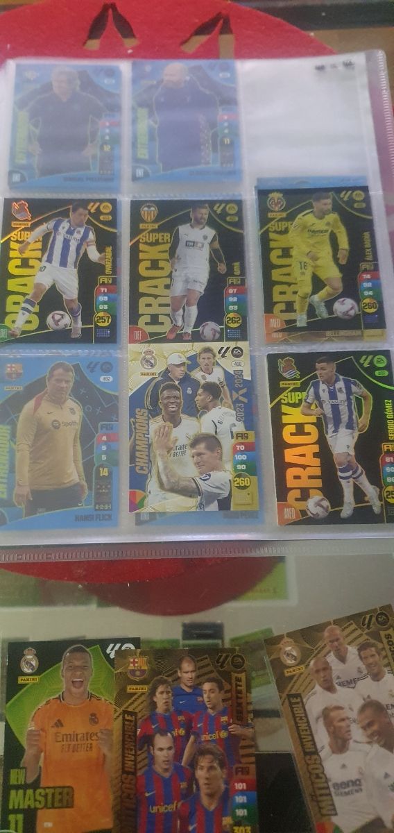 - Se aprecian cromos de equipos como Real Madrid, FC Barcelona y Villarreal CF.
