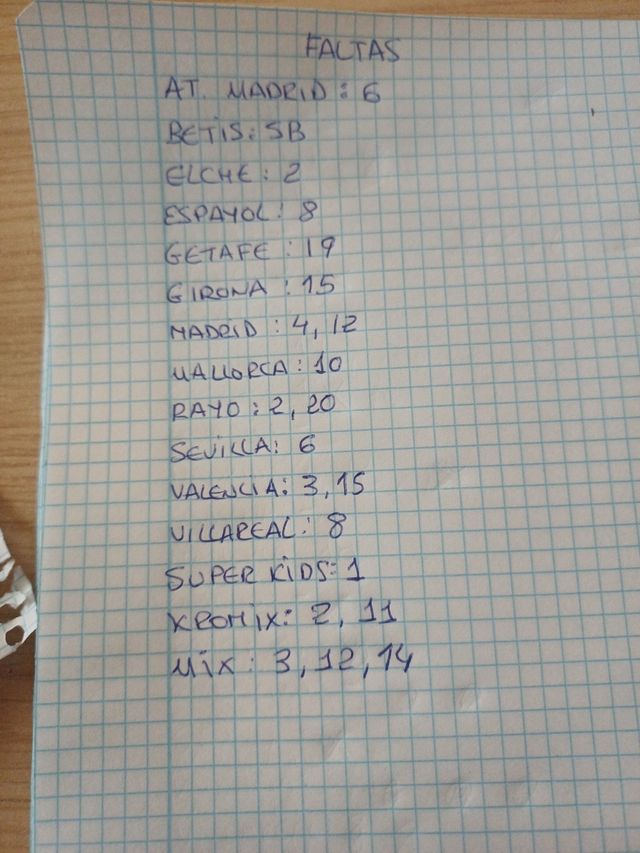 - Cromos de equipos como Alavés, Bilbao, Madrid, Barça, Betis, Celta, Elche, Espanyol, Getafe, Girona, Levante, Mallorca, Osasuna, Oviedo, Rayo, R. Sociedad, Sevilla, Valencia y Villarreal.