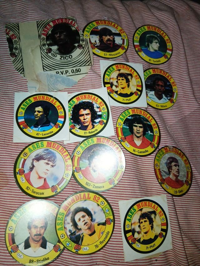 Detalles del productoSe venden cromos de la colección Ases Mundial 82 de fútbol. Son cromos de jugadores de la época.