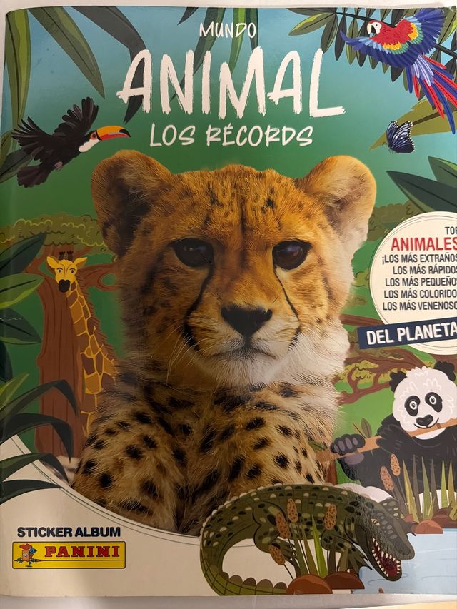 Detalles del productocromos Mundo Animal: Los Récords de Panini. Contiene información sobre animales y sus récords.