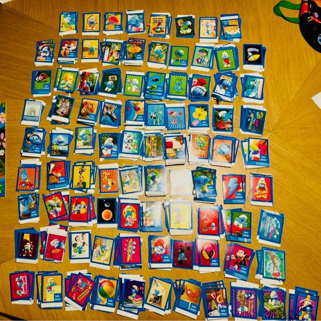 Detalles del productoCAMBIO unos 370 pegatinas de la Colección de cromos de los Pitufos por el Número 9.