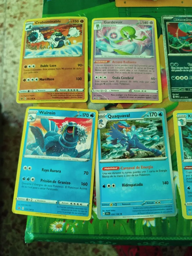 Colección de cromos Pokémon. - Crabominable (150 HP) - Gardevoir (140 HP) - Walrein (170 HP) - Quaquaval (170 HP)
