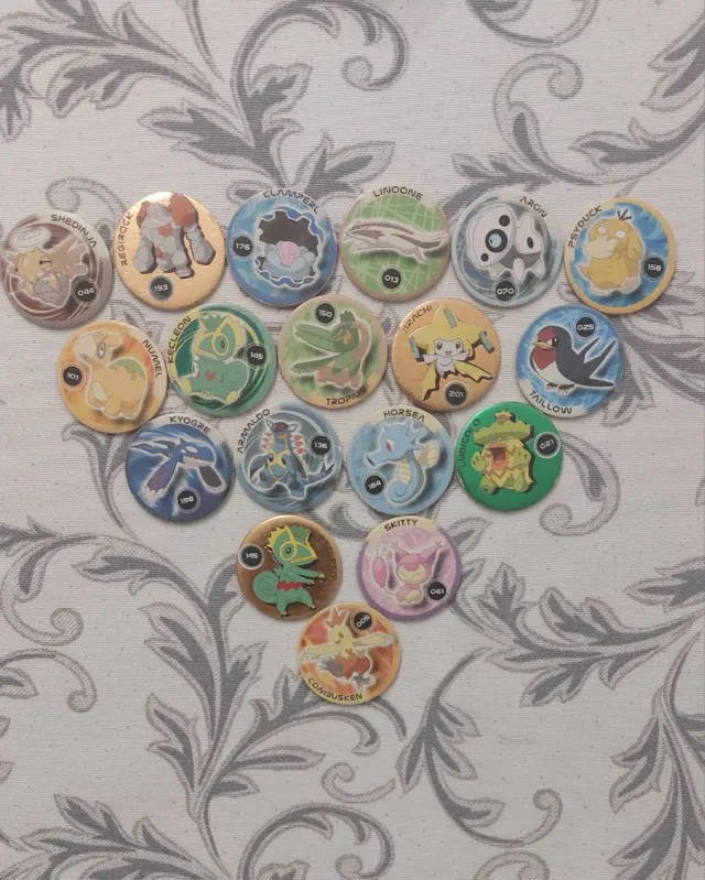 Colección de cromos redondos de Pokémon, también conocidos como pickers. - Incluye varios Pokémon populares. - Diseños variados y coloridos.