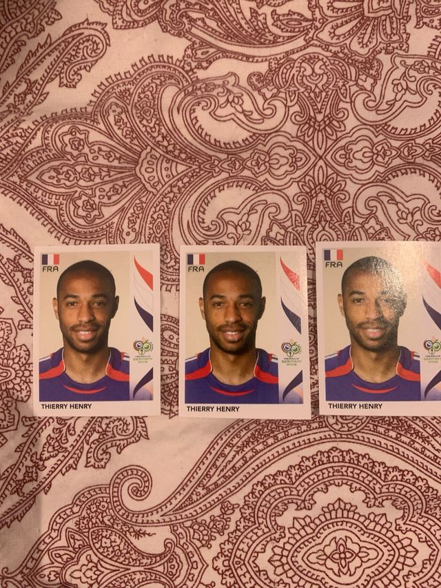 Detalles del productoLote de 3 cromos de Thierry Henry del Mundial de Fútbol de 2006.