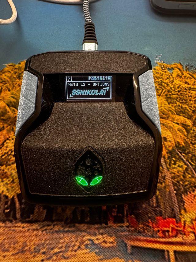 Dispositivo Cronus Zen modelo CM00053. - Diseño en color negro y gris. - Logo frontal iluminado en verde.