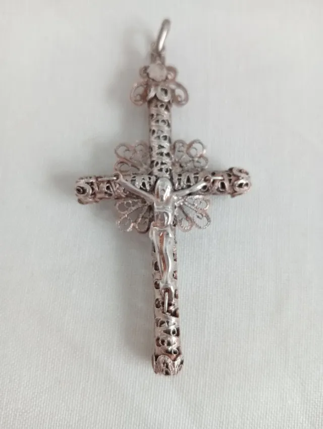 Preciosa cruz de estilo vintage con un intrincado diseño de filigrana.