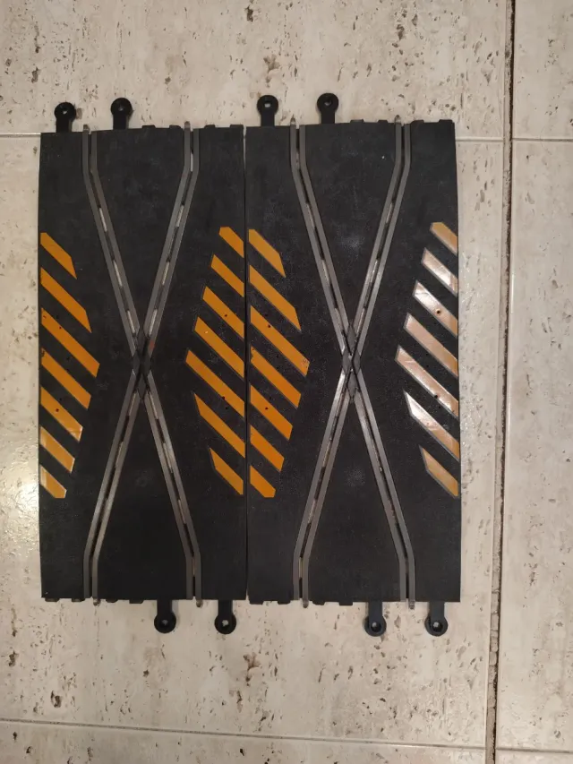 Pieza de cruce para pistas de Scalextric. Permite crear trazados más complejos y divertidos. - Diseño en color negro con detalles en amarillo y blanco.