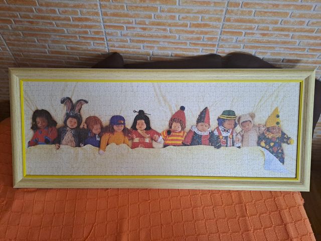 Detalles del productoMarco de cuadro nuevo y de madera buena,contiene un puzzle de 1000 piezas de bebés,perfecto para decorar habitación de niños pequeños y bebes,medidas del cuadro 104x42cm. Medidas del producto