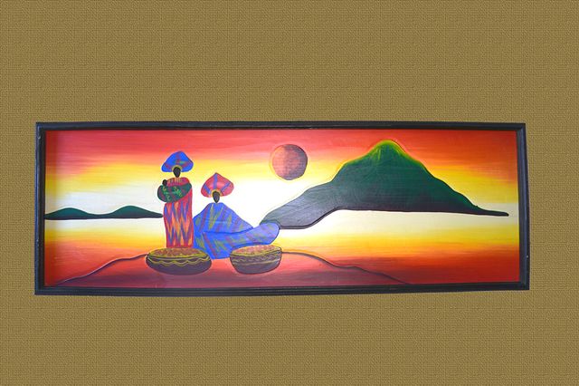 Detalles del productoCuadro pintado a mano (óleo), importado de áfrica. Las figuras tienen un ligero relieve en el contorno. Medidas: 122 cm x 42 xm x 3 cm aprox. A recoger en zona Instituto Pino Montano.