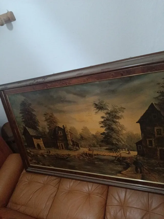 Detalles del productoAntiguo cuadro decorativo con una escena de paisaje.