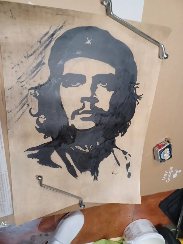 Representación artística de Che Guevara. - pintado a mano - Estilo stencil. Cualquier duda consultar Medidas 65 x 48