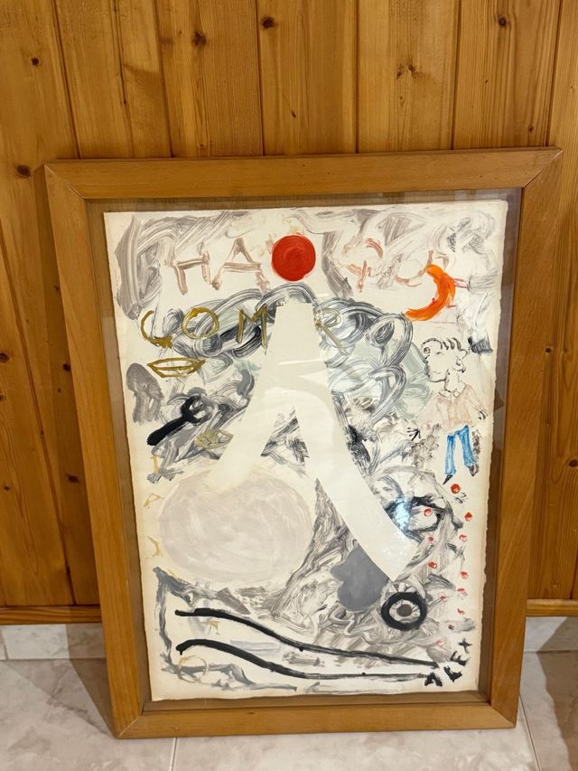 Detalles del productoCuadro de estilo abstracto pintura al oleo sobre papel con marco de madera. Firma Alex