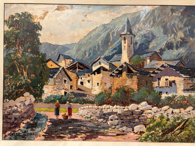 Cuadro de pueblo en montaña.