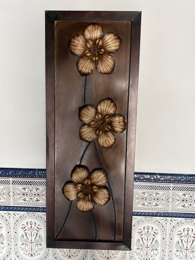 Cuadro Decorativo Flores Metal Marrón Dorado