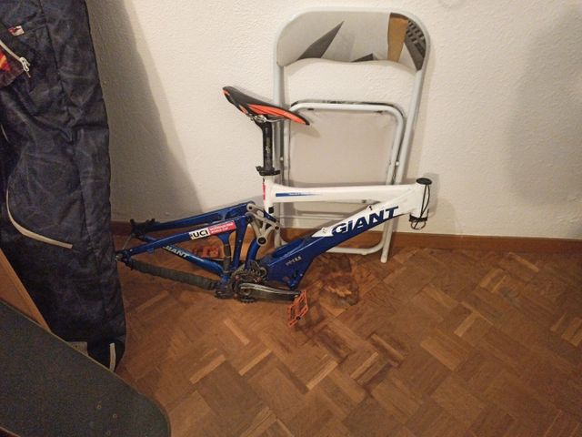 Cuadro de descenso Giant Glory 8.8 (para amortiguador de 240mm entre ojos) con dirección "el gallo" con 2 meses de uso real, sillín Finn, tija Raceface Evolve Dh, bielas Saint,plato 32t estrecho/ancho y otro 38t normal, pedales Fireye.