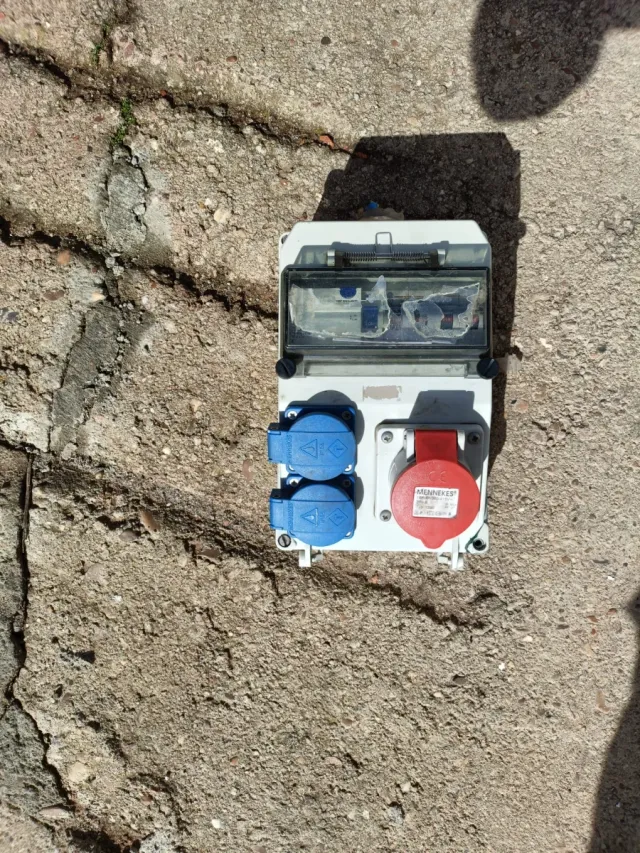 Detalles del productoCuadro eléctrico de obra industrial con varias tomas de corriente.