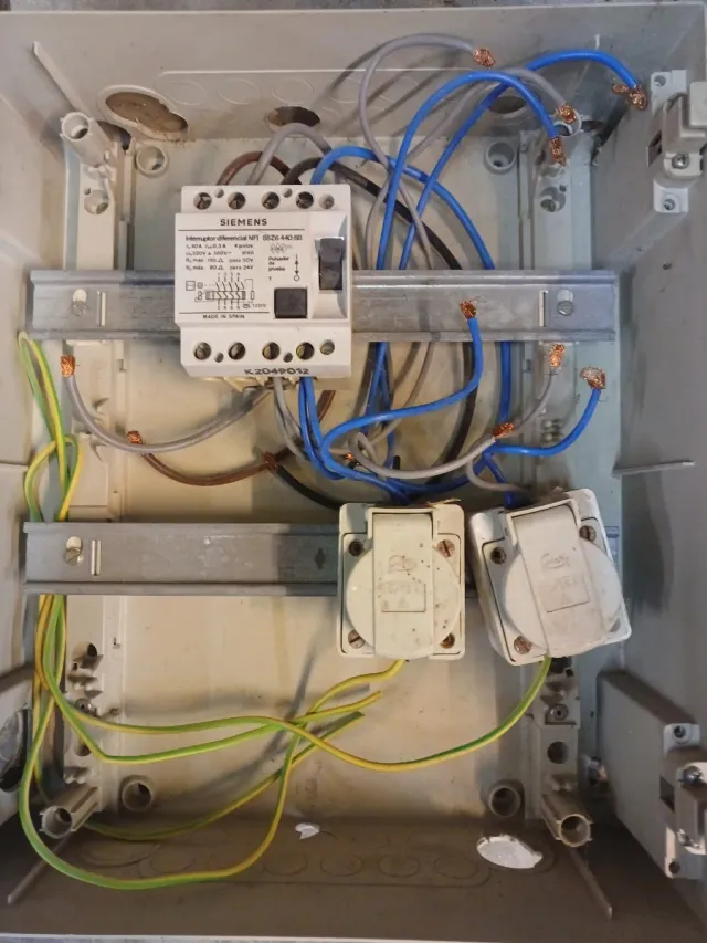 Detalles del productoSe vende cuadro eléctrico usado con varios componentes incluidos: interruptor diferencial Siemens, bases de enchufe industriales y cableado. Ideal para repuestos, proyectos de bricolaje eléctrico, formación o montaje de nuevos cuadros. Está completo tal como aparece en las fotos. Funciona, aunque necesita repasar conexiones.