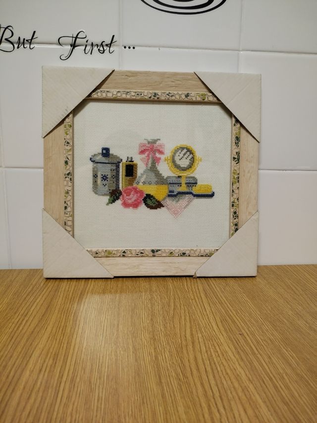 Nuevo, hecho de punto de cruz. Marco nuevo. Medidas en las fotos