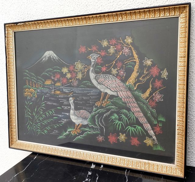Detalles del productoCuadro pintado a mano de pintura sobre tela y enmarcado con un marco de madera vintage. Medidas del producto