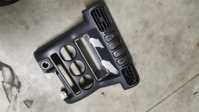 Detalles del productoPanel central para Nissan Micra K11 Super S. Pieza de plástico negro con rejillas de ventilación y botones.