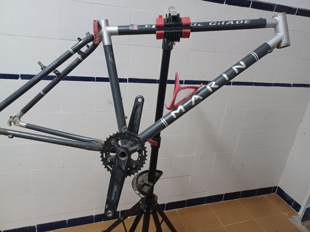 Detalles del productoCuadro de bicicleta clásico años 90 Marin Eldridge Grade aleación cromo-molibdeno. Para restaurar, con picados y abrasiones del uso, pero sin golpes. Precisa limpieza. Roscas para tornillos en perfecto estado. Para frenos tipo cantilever o en V. Talla m, peso 3250 gramos incluyendo ennel peso bielas biplato deore, eje hueco y cierre sillín (se entregan con el cuadro). Sólo para coleccionistas y restauradores.