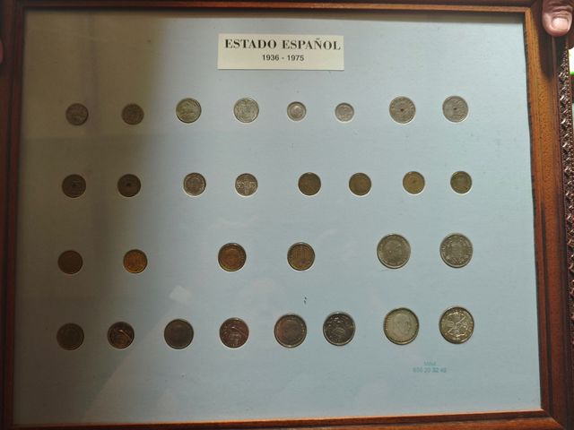 Colección de monedas del Estado Español enmarcada. - Monedas de diferentes valores y años. - Periodo 1936-1975.