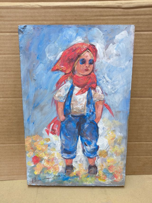 Preciosa pintura de una niña, realizada con una técnica que recuerda al impresionismo. Los colores son vibrantes y la pincelada es visible, dando textura a la obra.