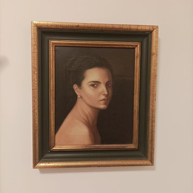 cuadro antiguo pintado a mano sobre lienzo. Medidas 47 × 41 Con signos del paso del tiempo
