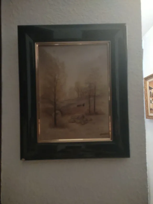 Cuadro Óleo Madera Marco Dorado