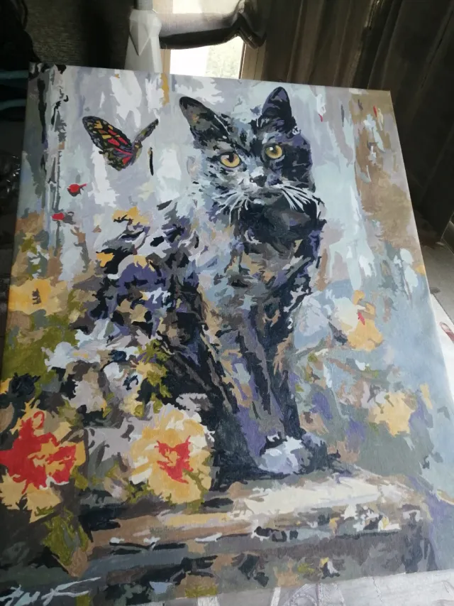 Cuadro Pintado por Números Gato Mariposa óleo.