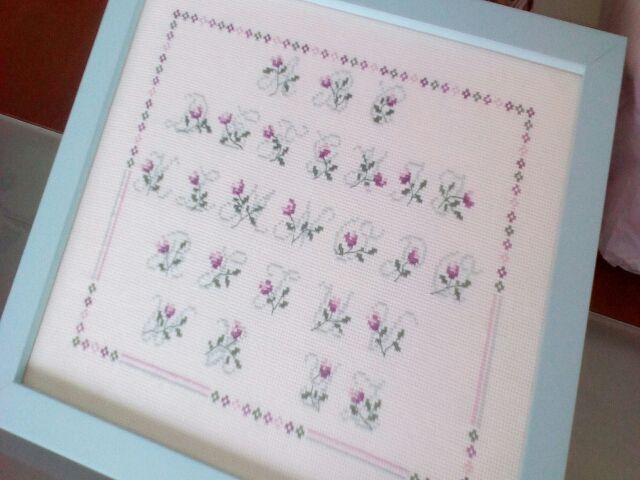 Detalles del productoCuadro del alfabeto, tejido a punto de cruz.