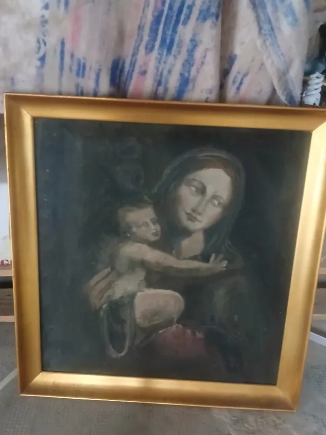 Detalles del productoPrecioso cuadro religioso de la Virgen María con el Niño Jesús. Una obra de arte que aporta serenidad y devoción a cualquier espacio.