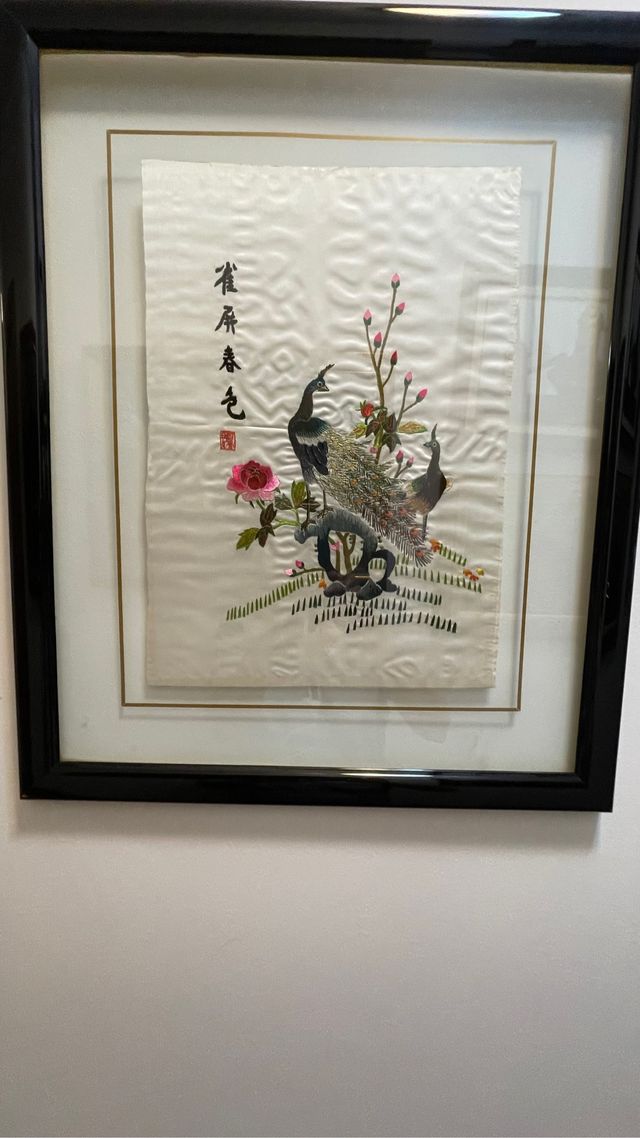 Dos Cuadros japoneses bordados a mano.
