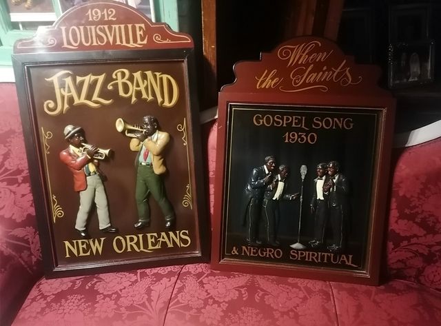 Detalles del productoCuadros vintage de madera (no son de resina ni estan hechos recientemente) de bandas de Jazz originales 1912 Louisville y When the Saints. Muy bien conservados. Precio de 1912 Louisville 160€. Precio When de Saints 130€. Los dos a 280€.