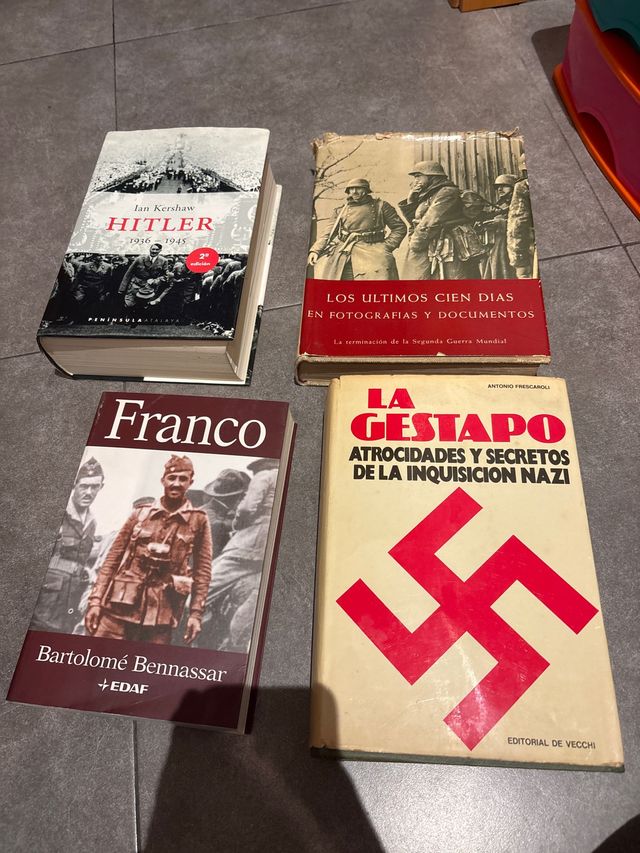Detalles del productoCuatro libros de historia para todo aquel que quiera conocer la vida de Hitler cuando entro al poder ,los últimos 100 dias de la segunda guerra mundial ,saber sobre la gestapo y conocer quien fue franco