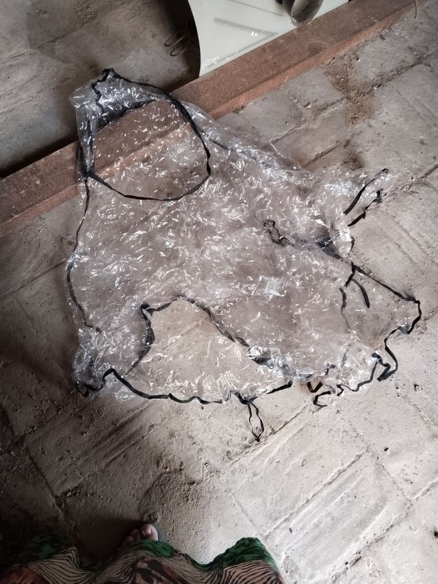 Detalles del productoCubierta para lluvia de carrito de bebé, transparente y con bordes negros. Está en buen estado, aunque algo arrugada.