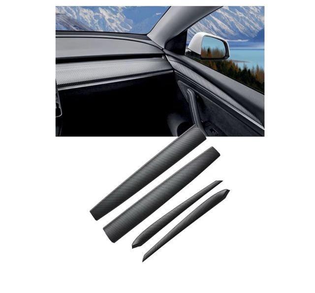 KKTR-CAR para Tesla Model 3 Model Y Dash Wrap Puerta Trim Cubierta Tablero Interior Carbono Patrón Decoración Wrap Kit Salpicadero Accesorios 4 Piezas (Fibra de carbono brillante-4 piezas)