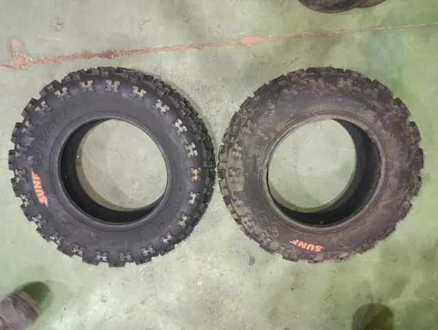 Par de cubiertas para quad marca SUNF. - Medida 22x7-10. - Diseño de tacos para tracción en terrenos variados.