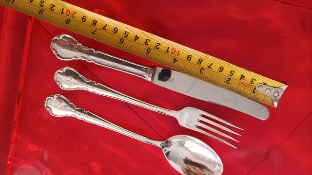 Detalles del productoJuego de cubiertos de plata baja Fanco P96. Son tres piezas: cuchillo, tenedor y cuchara. Están sin usar y llevan nombre grabado. Diseño elegante y clásico.
