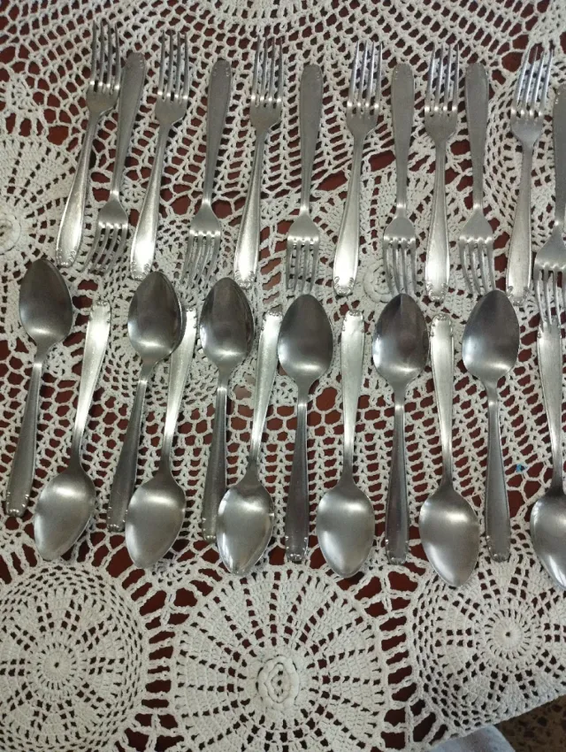 Conjunto de cubiertos de la marca Gallo. - Fabricados en metal. - Color plateado.57piezas