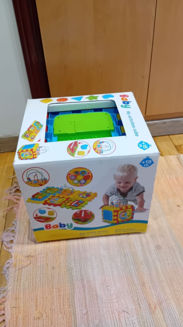 Detalles del productoCubo de actividades para bebés, ideal para el desarrollo temprano.