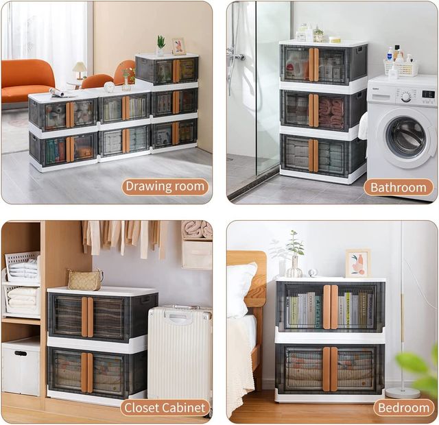 Detalles del productoCubo de Almacenaje con Tapa, Plegable, Organizador de Armarios, Caja de Almacenaje Plegable de 32 litros de capacidad, apilable. Con ruedas.