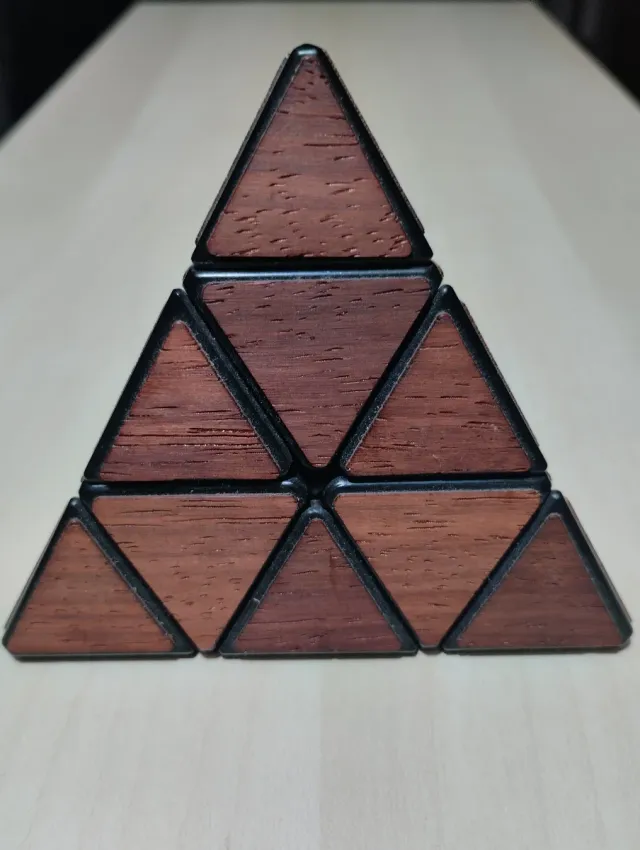 Cubo mágico Meffert's Pyraminx madera, difícil de encontrar - Cada cara un tono - Tiles de madera. - Diseño de 30 aniversario.