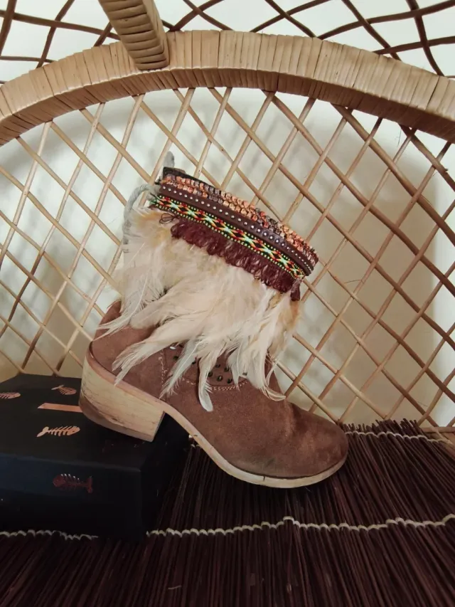 Cubrebotas con plumas y adornos