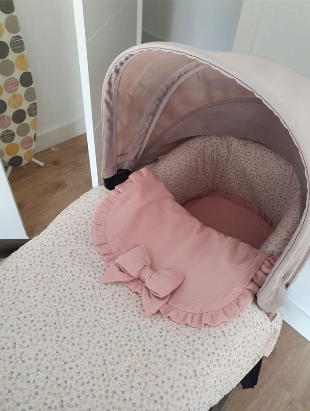Incluye cubrecapazo, 2 bajeras a juego, un salvababitas y la funda del carrito con lazo rosa.